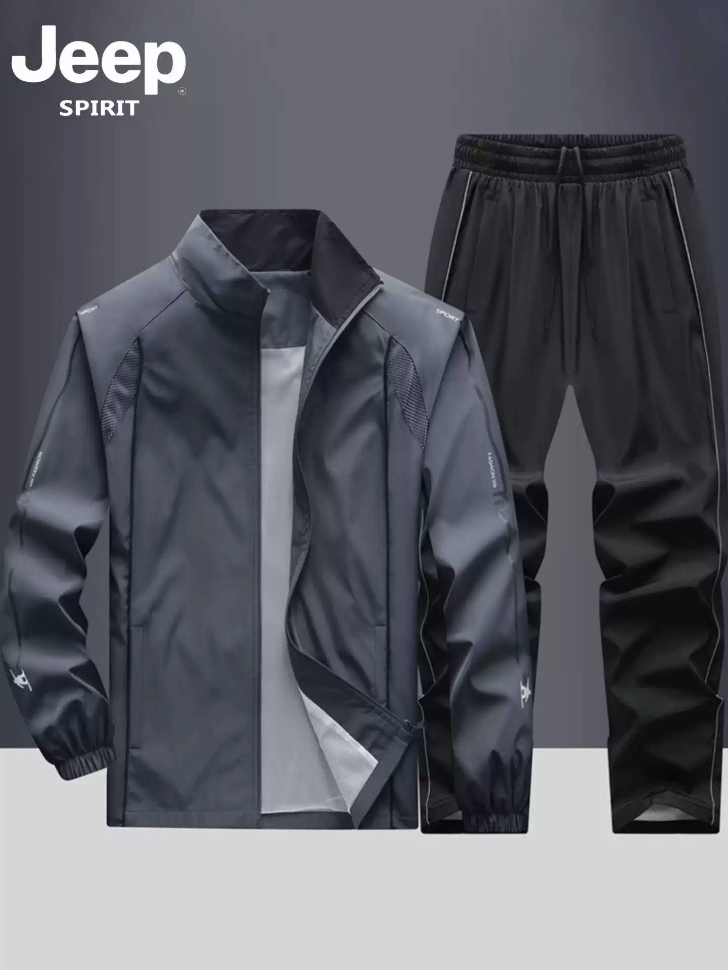 吉普运动套装男士秋季2025新款宽松中年爸爸装春装跑步休闲运