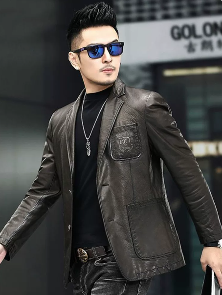 春季新款男士商务皮夹克薄款pu皮衣男时尚休闲中年西服领皮外套